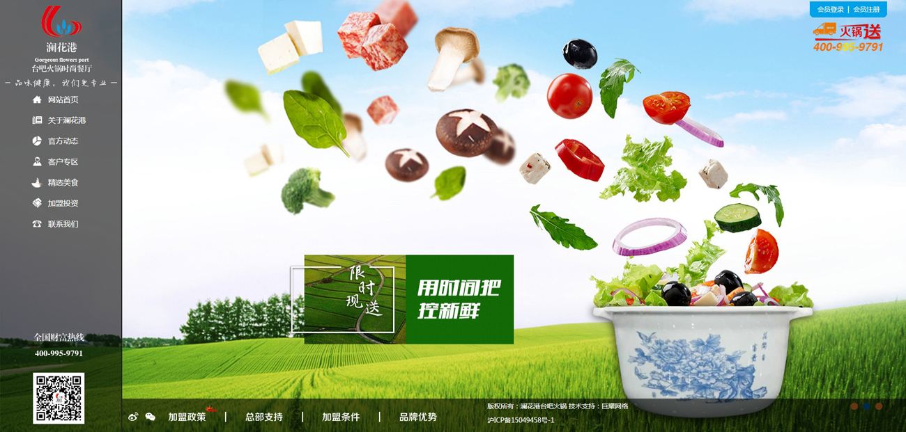 瀾花港”餐飲管理有限公司于2008年在上海創(chuàng)立,以其新穎的(花瓣形)臺吧式就餐形式和匯聚大江南北傳統(tǒng)火鍋的完美結(jié)合,開創(chuàng)了時尚休閑臺吧小火鍋的新業(yè)態(tài)?!盀懟ǜ邸笔冀K秉承“服務(wù)優(yōu)質(zhì)、衛(wèi)生清潔、營養(yǎng)便捷、大眾時尚消費,關(guān)懷備至的服務(wù)理念。是一家融匯川味及多派系火鍋特色于一體的大型直營火鍋連鎖企業(yè)。